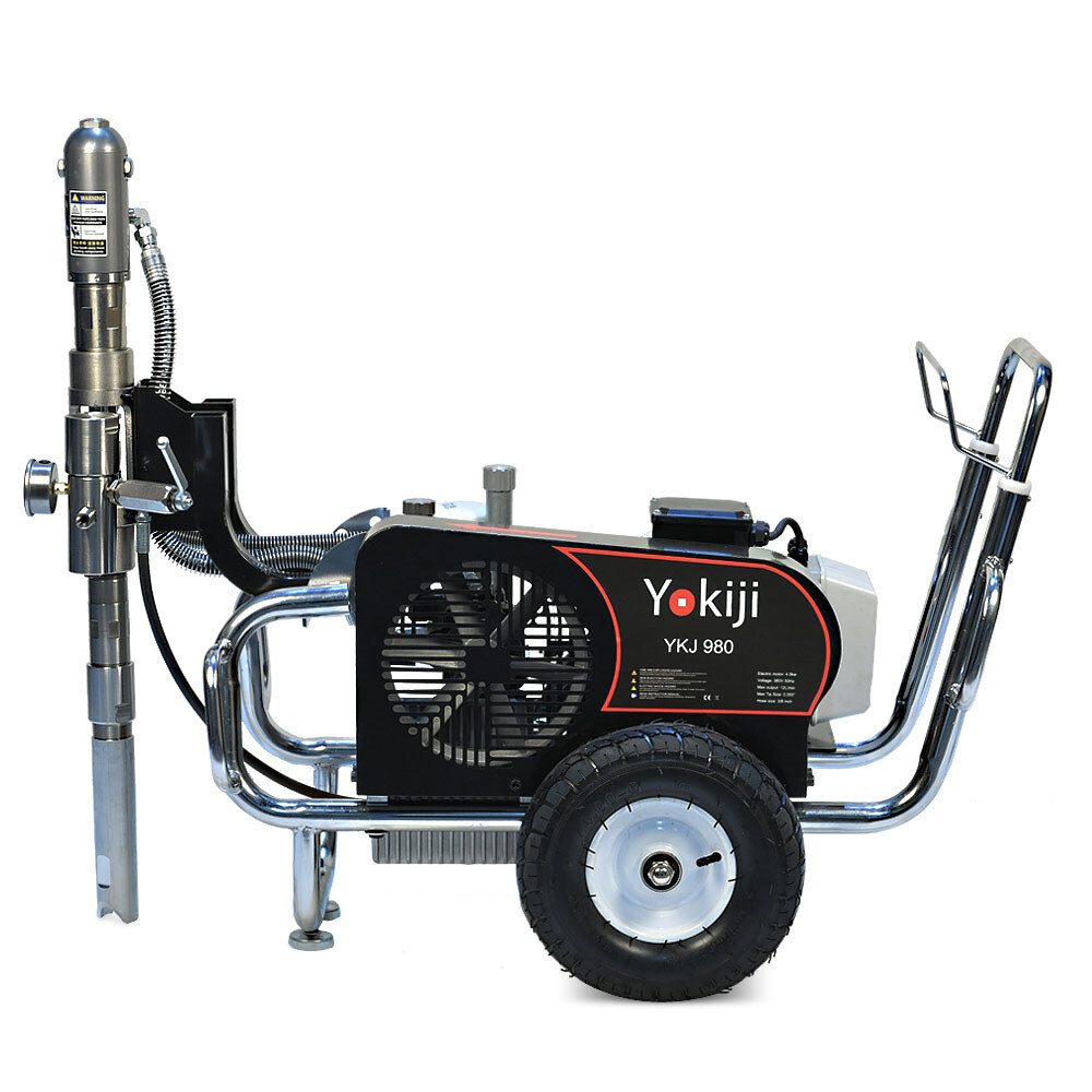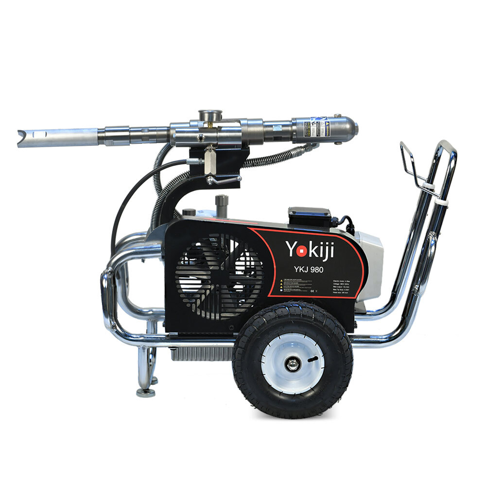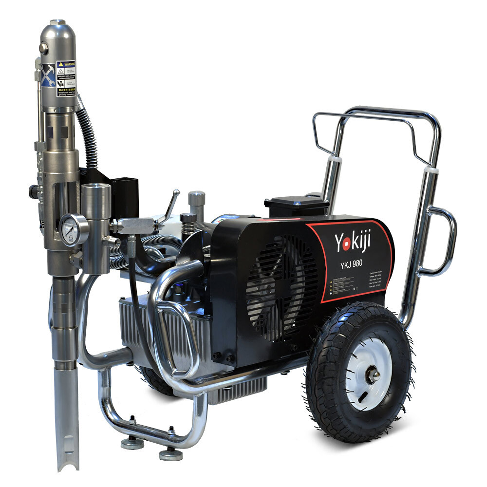 YOKIJI YKJ 980 – гидропоршневой безвоздушный электрический окрасочный аппарат. Он подходит для распыления красок, эмалей, шпаклевок, огнезащитных, гидроизоляционных, антикоррозийных и цинконаполненных составов, мастик, грунтовок и других лакокрасочных материалов, предназначенных для нанесения через поршневой безвоздушный окрасочный аппарат.