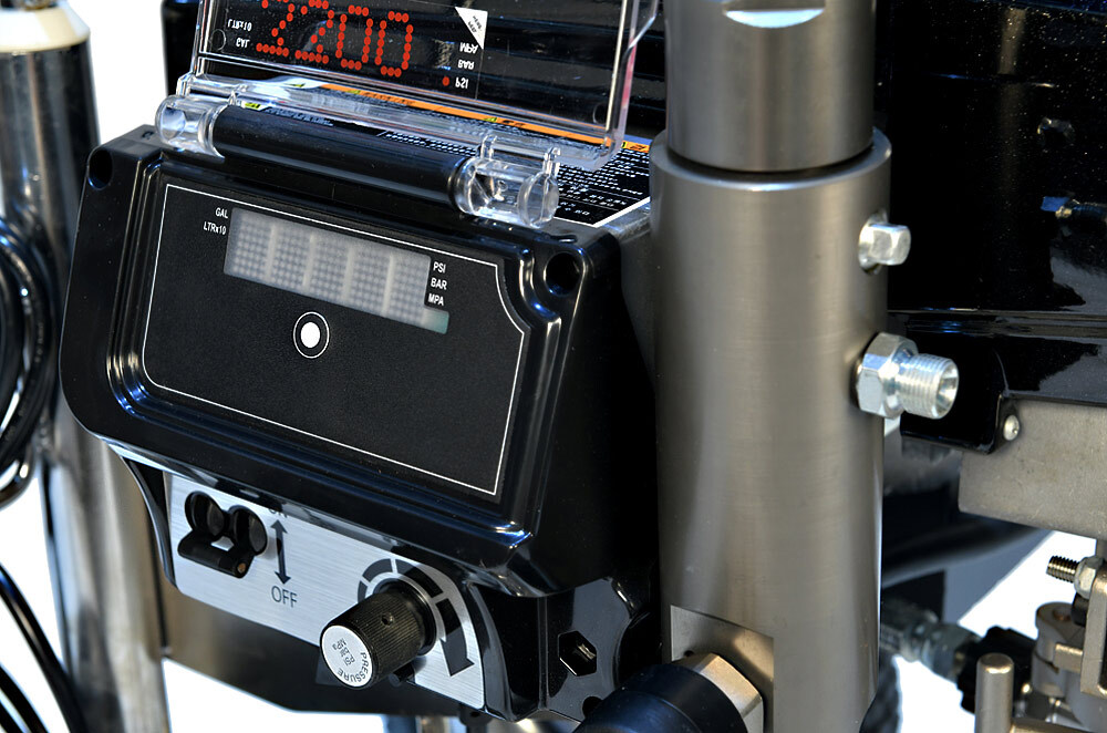 • электронная система управления с цифровым дисплеем. Обеспечивает стабильное давление в распылителе, без скачков и пульсаций, с просадкой не более 5%;