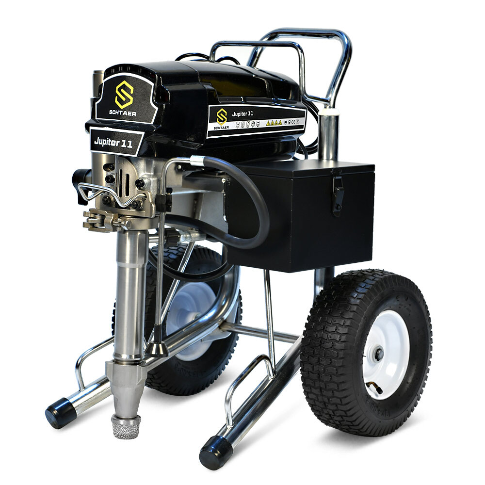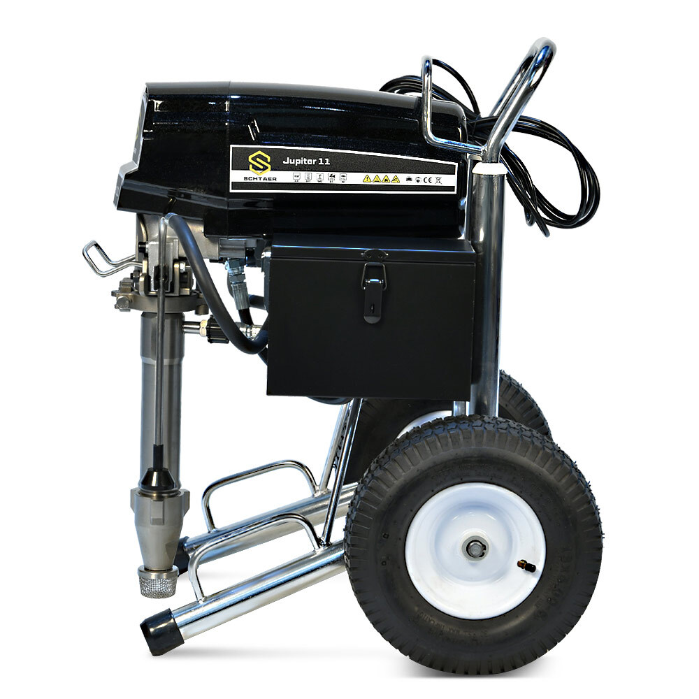 Schtaer Jupiter 11 — поршневой безвоздушный окрасочный аппарат, работает от электрического мотора 220 вольт, предназначен для распыления красок средней и высокой вязкости, огнезащитных составов, гидроизоляционных материалов, мастик, антикоррозионных красок, цинконаполненных материалов, шпатлевок, эмалей, грунтов, и других любых материалов, пригодных для нанесения через поршневой безвоздушный окрасочный агрегат.