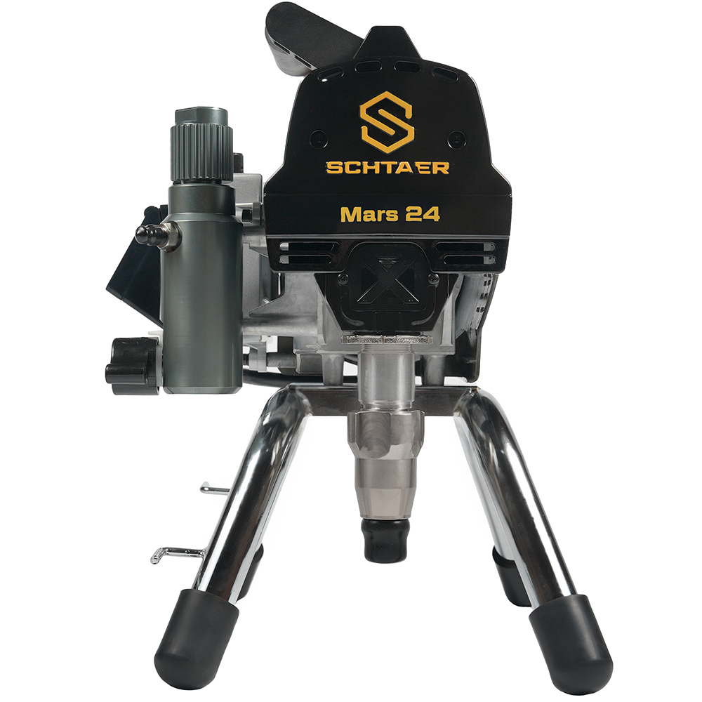 Schtaer Mars 24 – компактный легкий поршневой окрасочный аппарат с фильтром материала, электронной регулировкой давления и бесщеточным мотором.