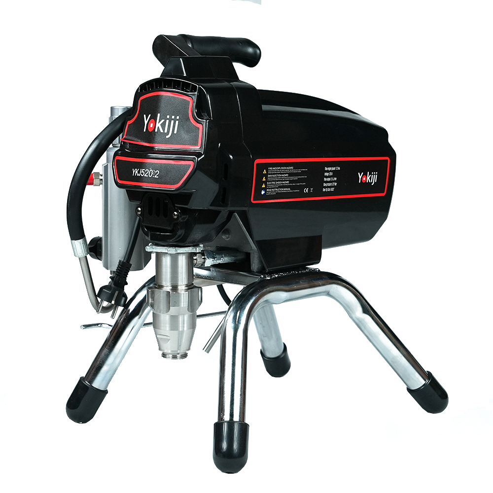 YOKIJI YKJ 520.2 – компактный легкий поршневой окрасочный аппарат с фильтром материала, электронной регулировкой давления и бесщеточным мотором. Ориентирован на выполнение интерьерных отделочных работ: нанесения грунтов, красок, эмалей на стены, потолки; также может применяться при окраске фасадов зданий, металлических и деревянных конструкций. Аппарат работает по принципу безвоздушного распыления под высоким давлением: материал подается от окрасочного агрегата через краскопульт, оснащенный соплом в соответствии с распыляемым материалом.
