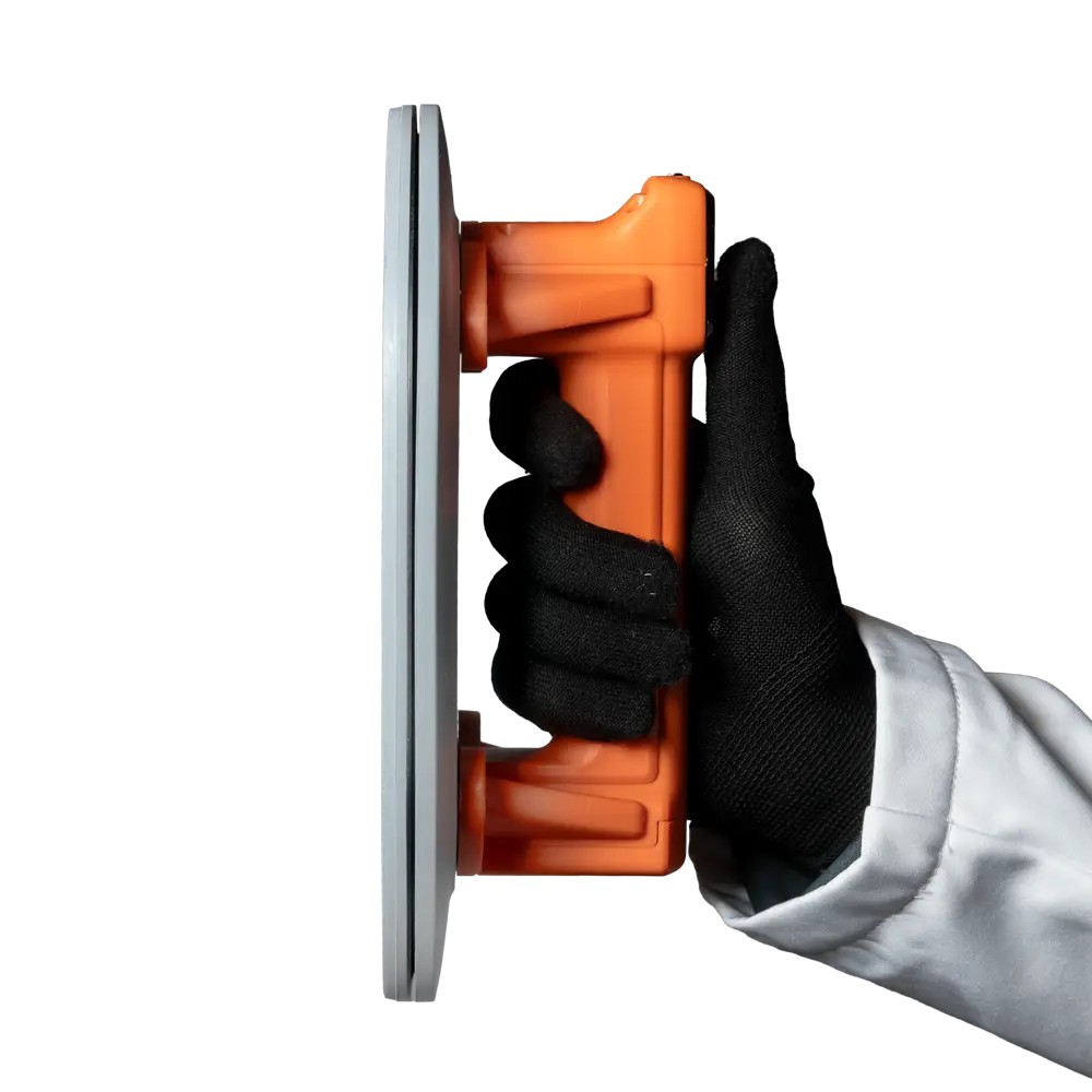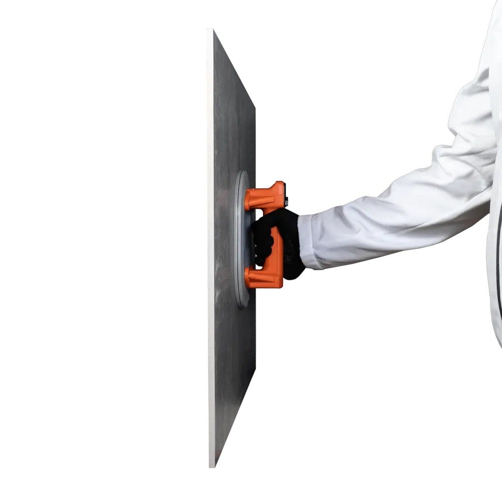 Автоматическая вакуумная присоска для подъема, перемещения и фиксации плитки. Овальное основание с резиновой чашей не оставляет черных следов. Сила вакуума до 220 кг