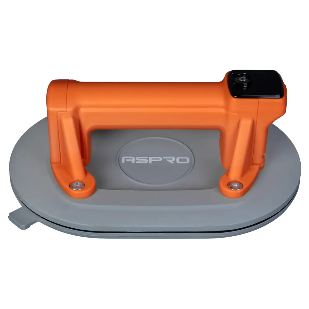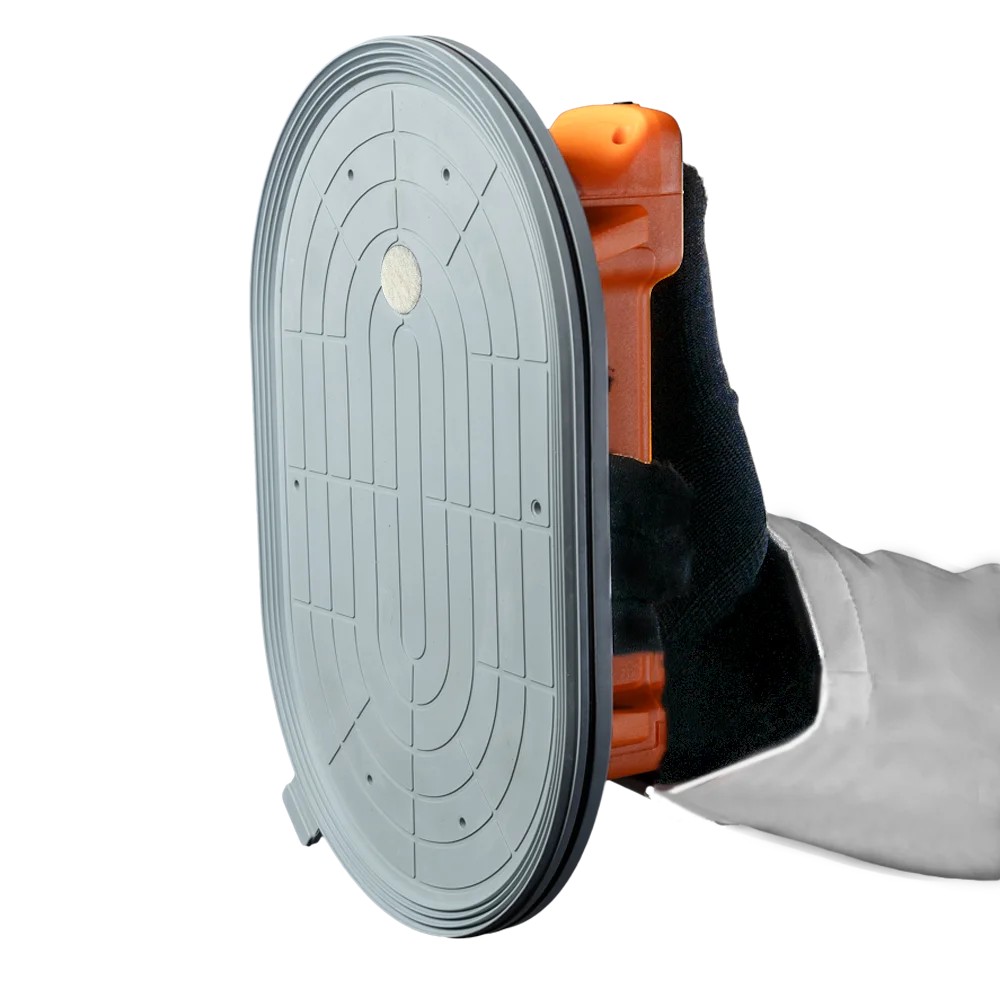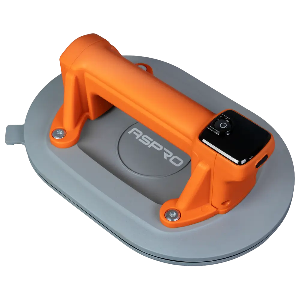 Вакуумная овальная присоска для плитки оснащена автоматическим электронасосом. Питание от аккумулятора 2 А·ч. Провод для заряда в комплекте