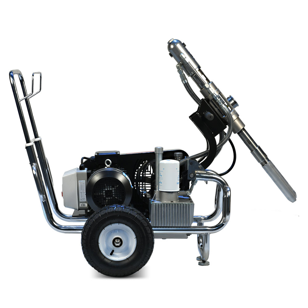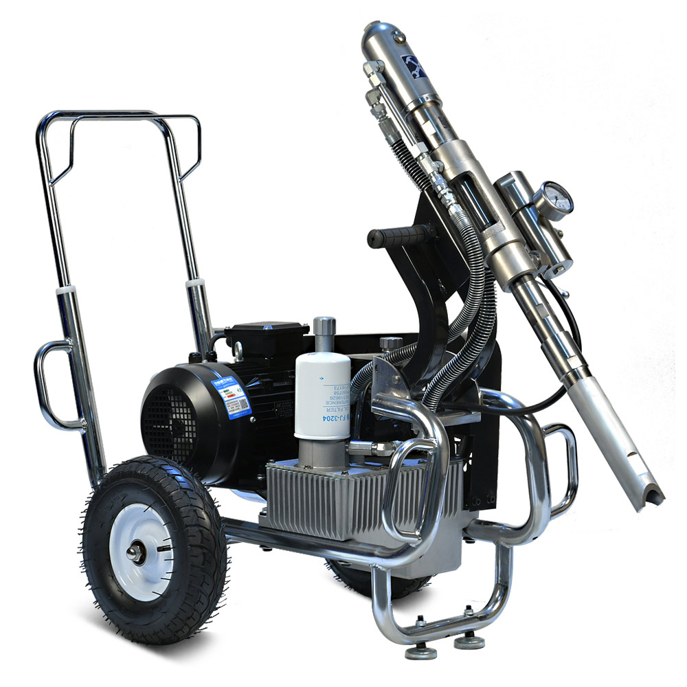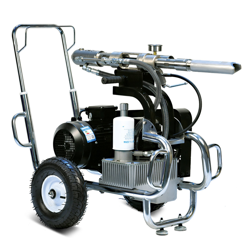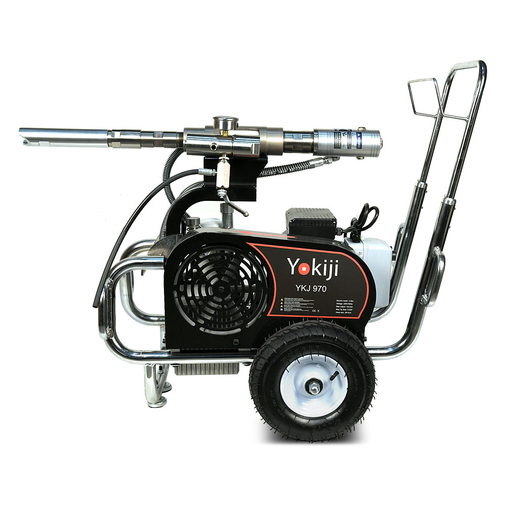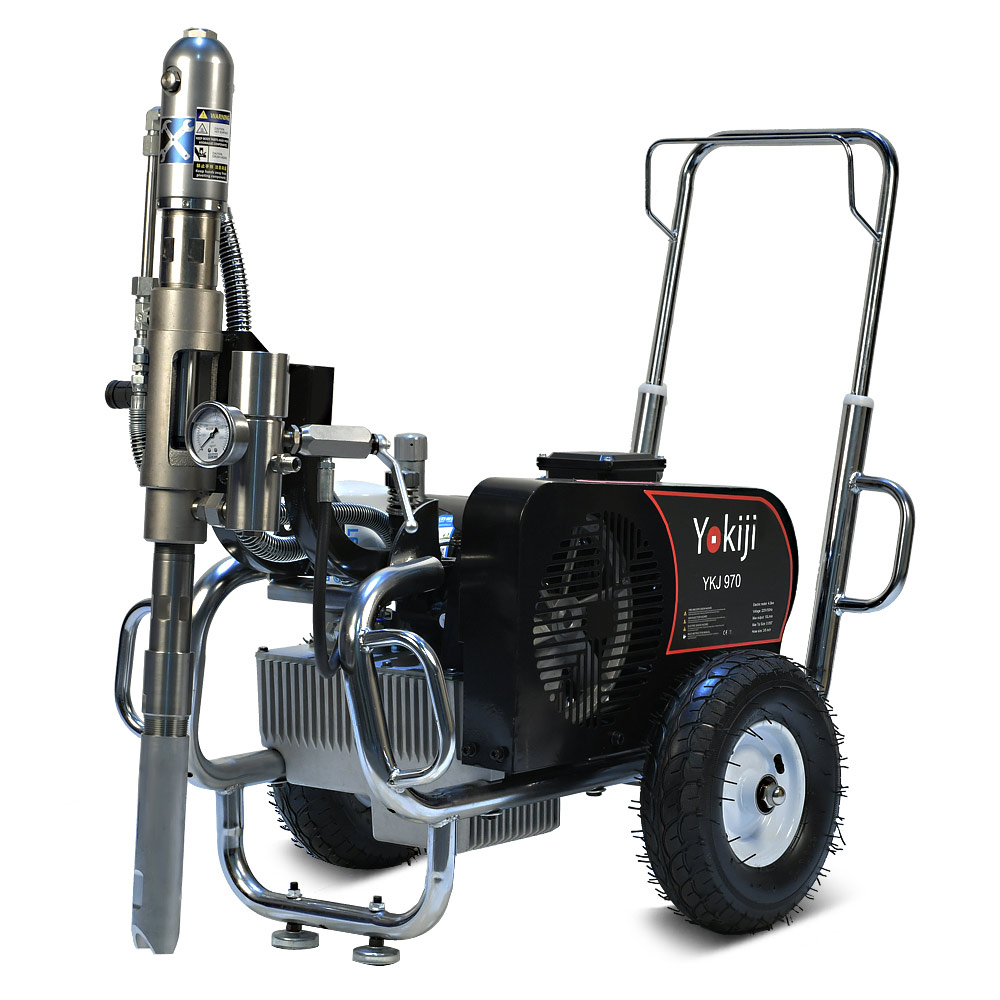 YOKIJI YKJ 970 – гидропоршневой безвоздушный электрический окрасочный аппарат. Он может применяться для распыления материалов с высокой, средней и низкой вязкости: красок, эмалей, шпаклевок, огнезащитных, гидроизоляционных, антикоррозийных и цинконаполненных составов, мастик, грунтовок. Аппарат используется на стройплощадка при отделке помещений, зданий и сооружений, а также на производствах при покраске больших конструкций. Модель работает от розетки 220B и обладает высокой производительностью (10 л/мин); позволяет присоединять до 3 малярных постов и подавать материал на высоту до 90 метров.