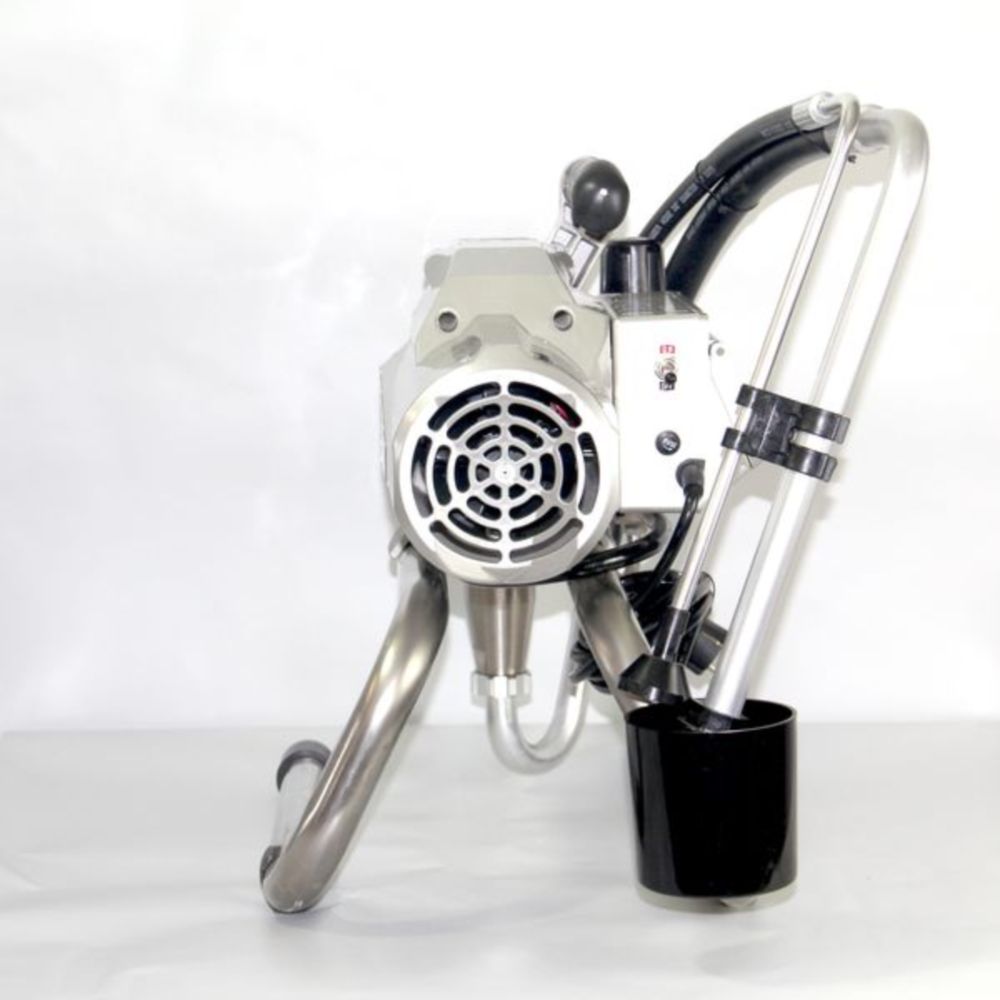 - Безвоздушный окрасочный аппарат с электрическим приводом мощностью 750 ват, расход материала 1.9 литра в минуту.
