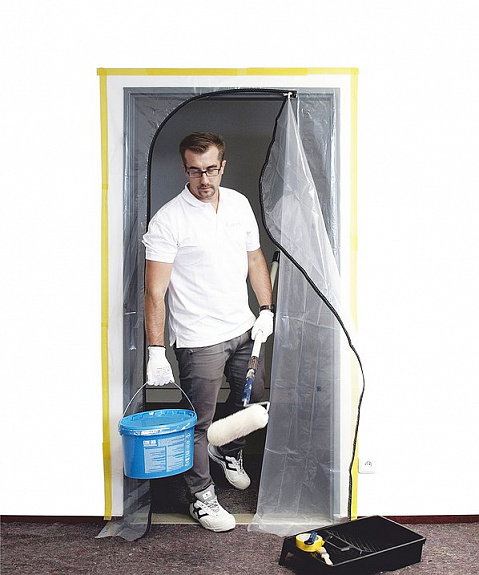 Дверь плёночная STORCH из плотного полиэтилена с двусторонней молнией. Используется для оптимальной защиты от пыли при строительных и отделочных работах. Быстро и просто монтируется с помощью клейкой ленты. Для дверей шириной от 60 см. Может использоваться многократно.