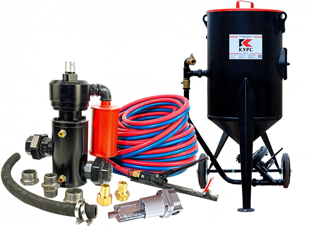 С пескоструйными «бочками» в начальной комплектации, с фильтром и с КПДУ мы рекомендуем использовать дозаторы для практичного дозирования расхода абразива двух типов: