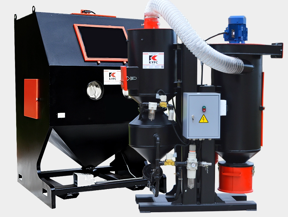 Дополнительная установка к камере, которая выполняет функцию очистки запыленного внутреннего пространства пескоструйной камеры, а также очистки, просеивания абразива от пыли, крупных примесей и подачи его под давлением в зону обработки. Фильтр улавливает пыль, мелкие частицы абразива. Благодаря фильтру и рекуператору в атмосферу подается уже очищенный воздух, а загруженный абразив может используется многократно и длительное время.Технические характеристики