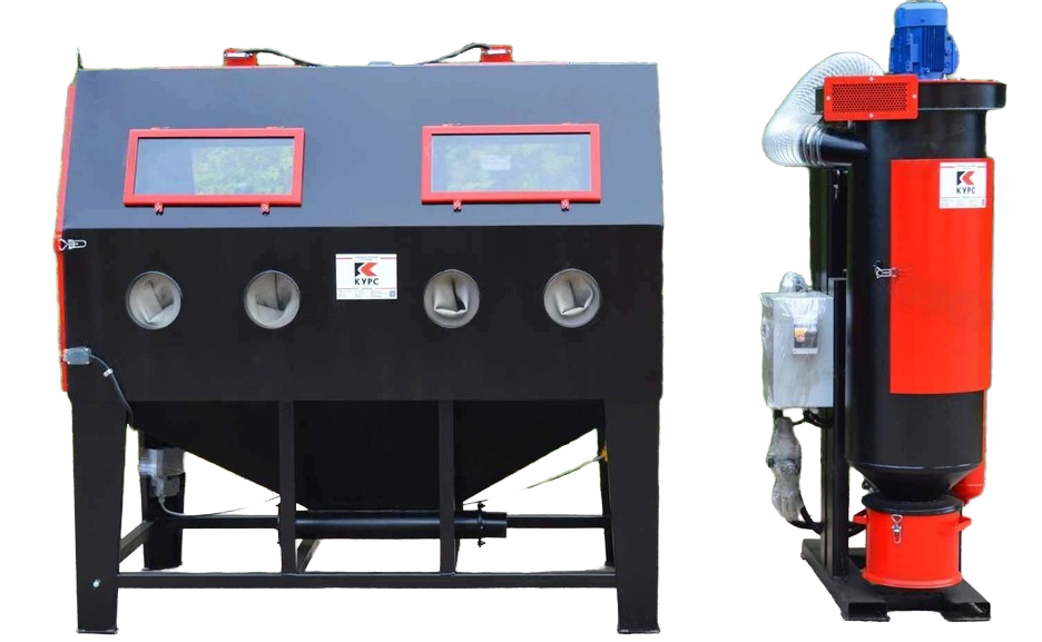 С данной камерой идет установка Н-ФВР-М – система удаления загрязненного воздуха из рабочей зоны и его очистки с одновременной очисткой абразивного материала от крупных включений и пыли.