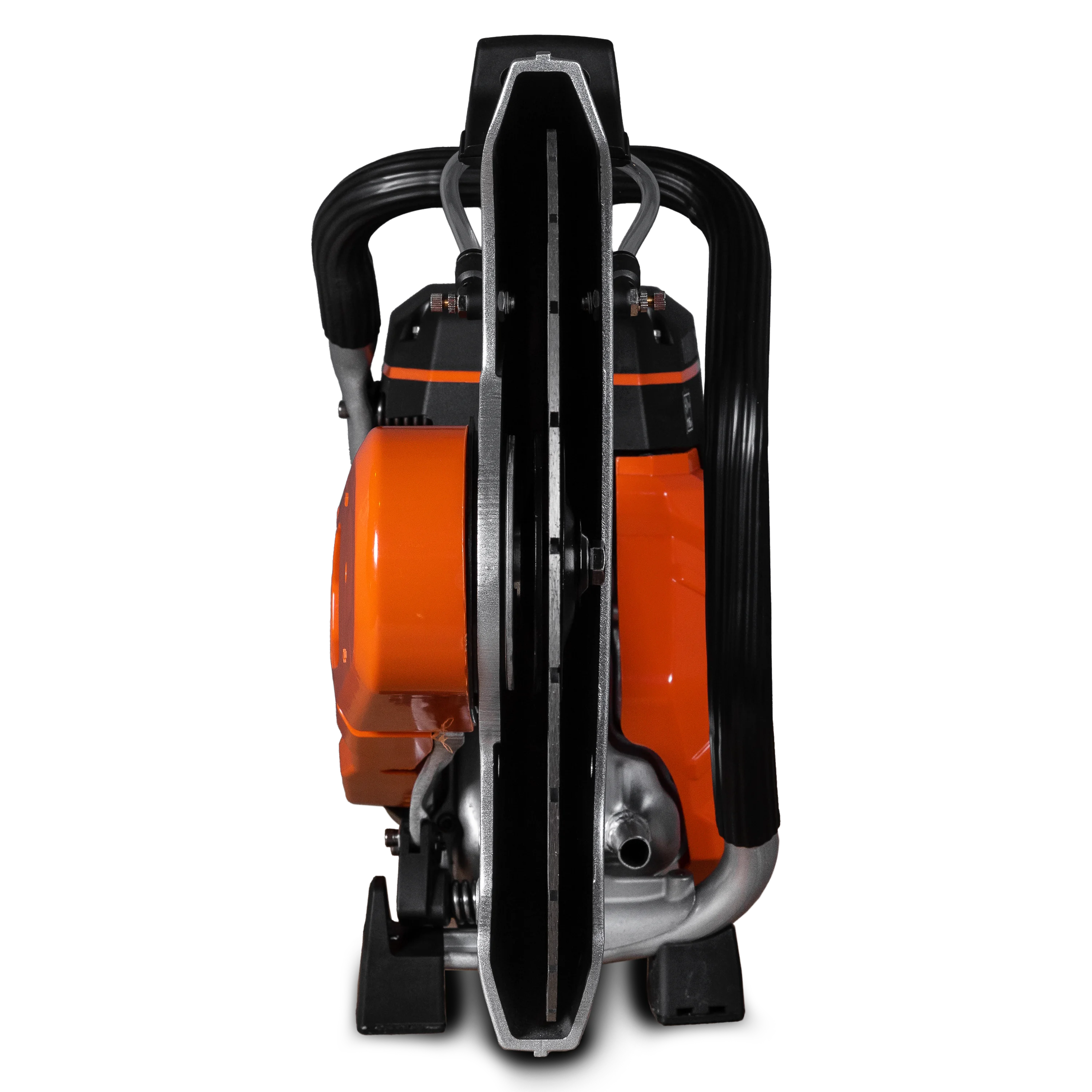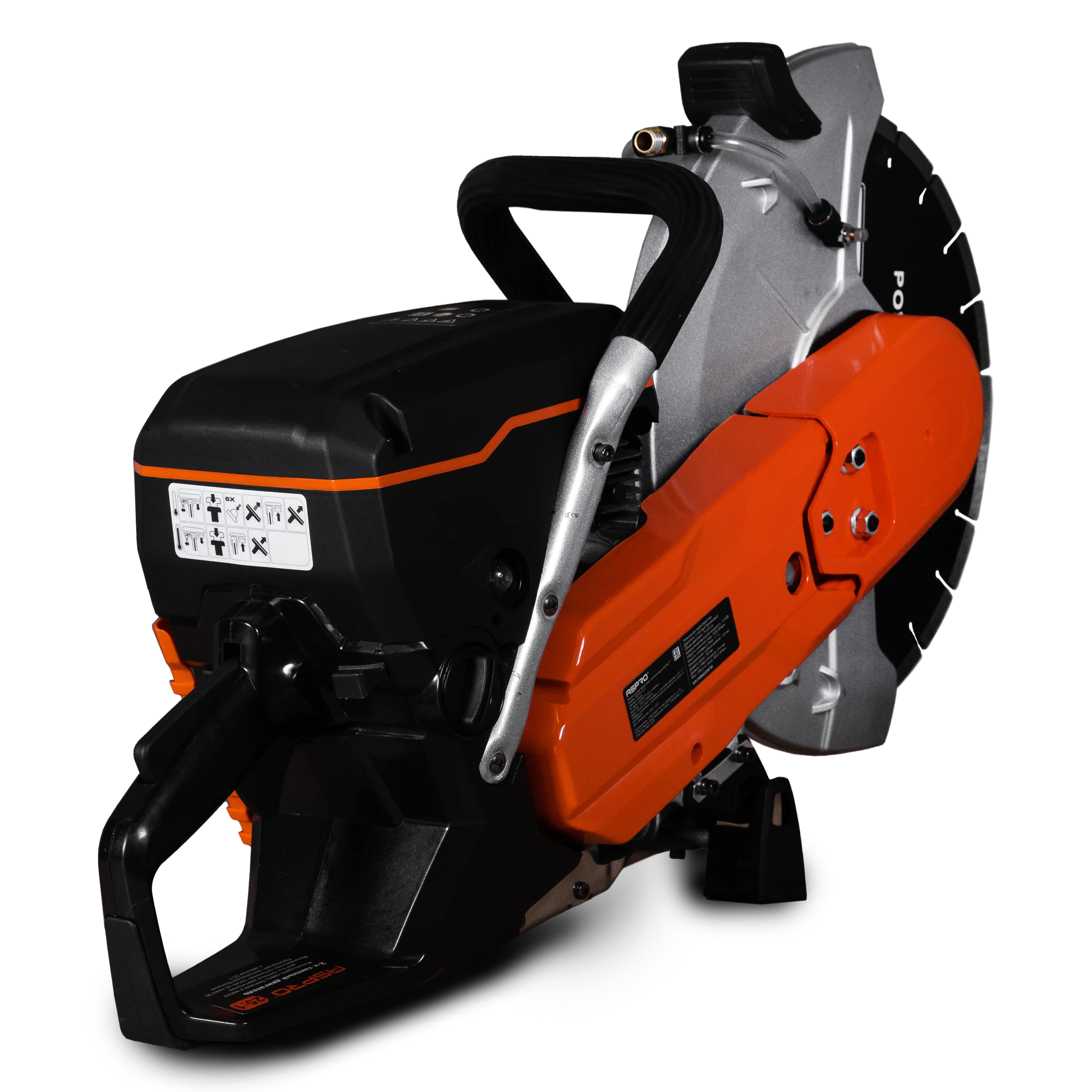 Бензорез оснащён подачей воды для мокрого реза, системой гашения вибрации и магниевым защитным кожухом. Мощность двигателя 3500 Вт.