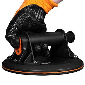 Вакуумная помповая присоска ASPRO-VS предназначена для надежного крепления и фиксации плиток и каменных плит весом до 120 кг. Она изготовлена из высококачественной резины, устойчивой к расширению и деформации. Присоска обеспечивает надежный захват, удобство в работе и снижает нагрузку на спину и поясницу укладчика плитки. Конструктивные элементы изготовлены из ударопрочного пластика, гарантирующего долгий срок службы. Присоска оснащена вакуумной кнопкой нагнетания давления с индикаторной линией - на ней имеется красная метка, которая предупреждает о снижении давления и необходимости подкачки. Поставляется присоска в пластиковом кейсе для удобства хранения и транспортировки.